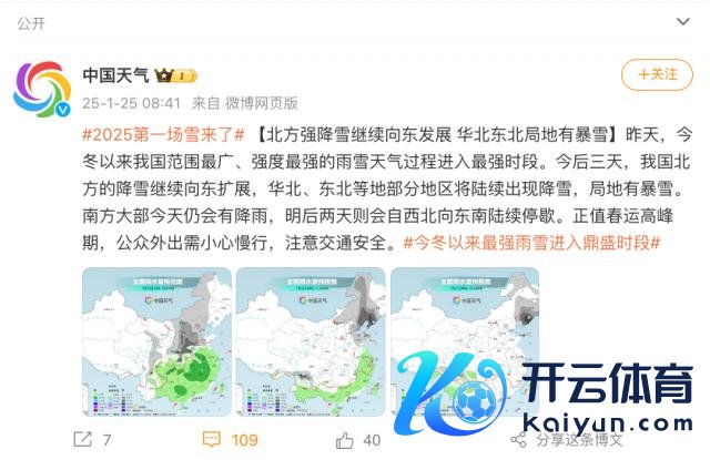 2025 第一场雪来了!1 月 24 日,今冬以来我国规模最广、强度最强的雨雪天气经由插足最强时段。